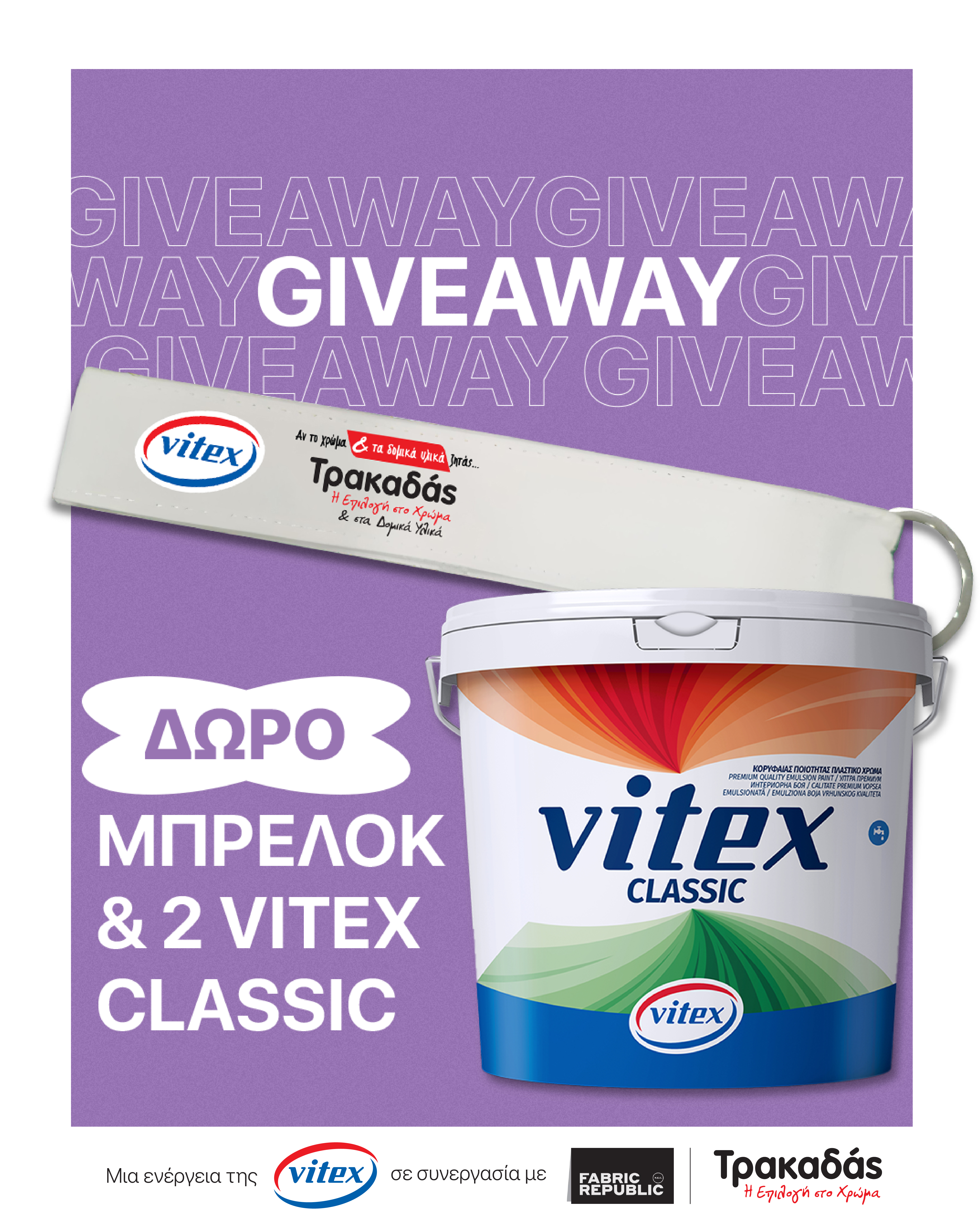 Δέκα (10) νικητές θα κερδίσουν από 1 μπρελόκ από τη Fabric Republic και 2 Vitex Classic Λευκό 3lt.